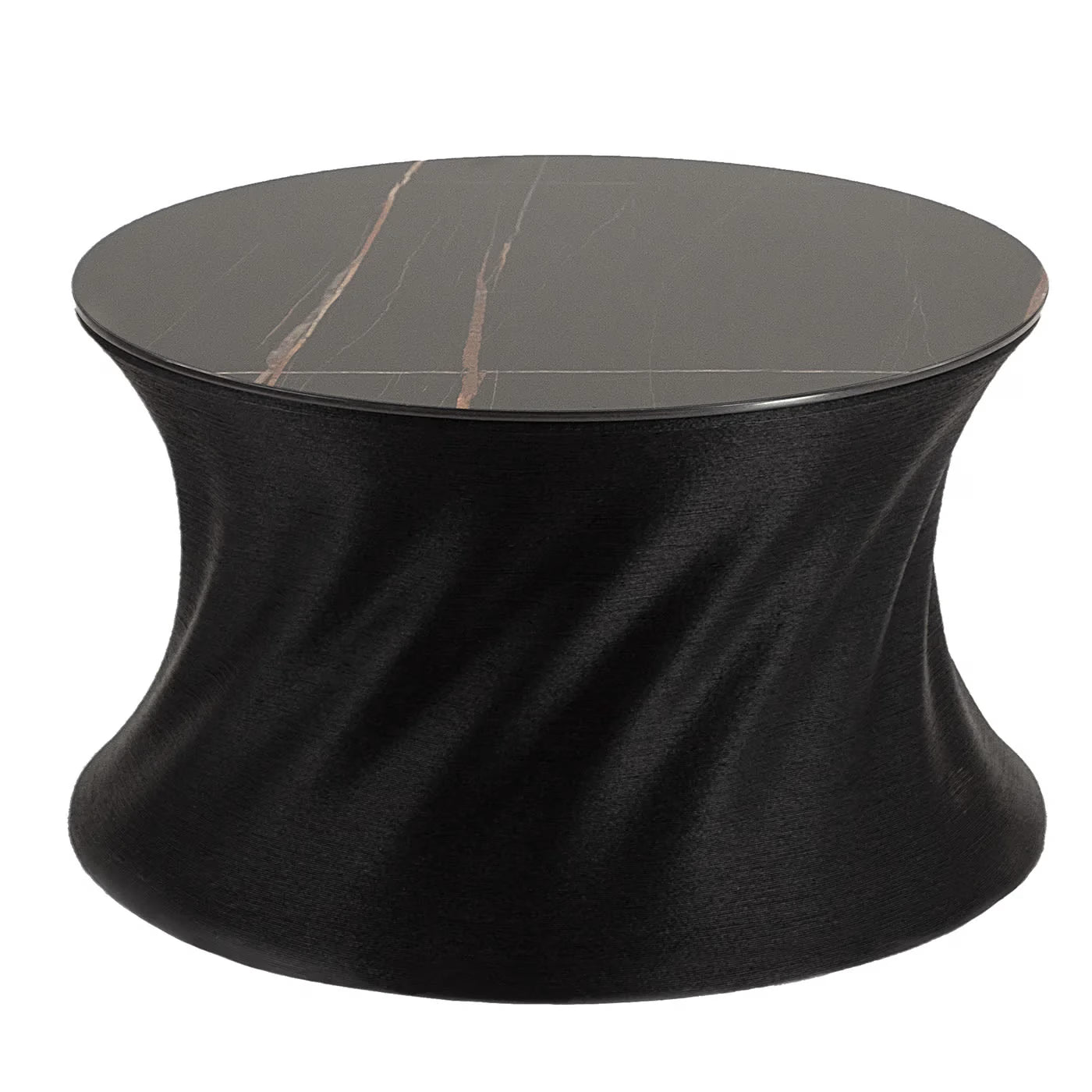 An unconventional product, crafted with cutting-edge materials for a timeless piece. This coffee table uses unconventional materials, expert craftsmen, and the latest technology to create innovative furniture of the highest quality. The Bryant coffee table's design is characterized by a very soft twist that almost makes it look like fabric. The frame material is PP (polypropylene) in a matte black color, made from 100% recycled materials.