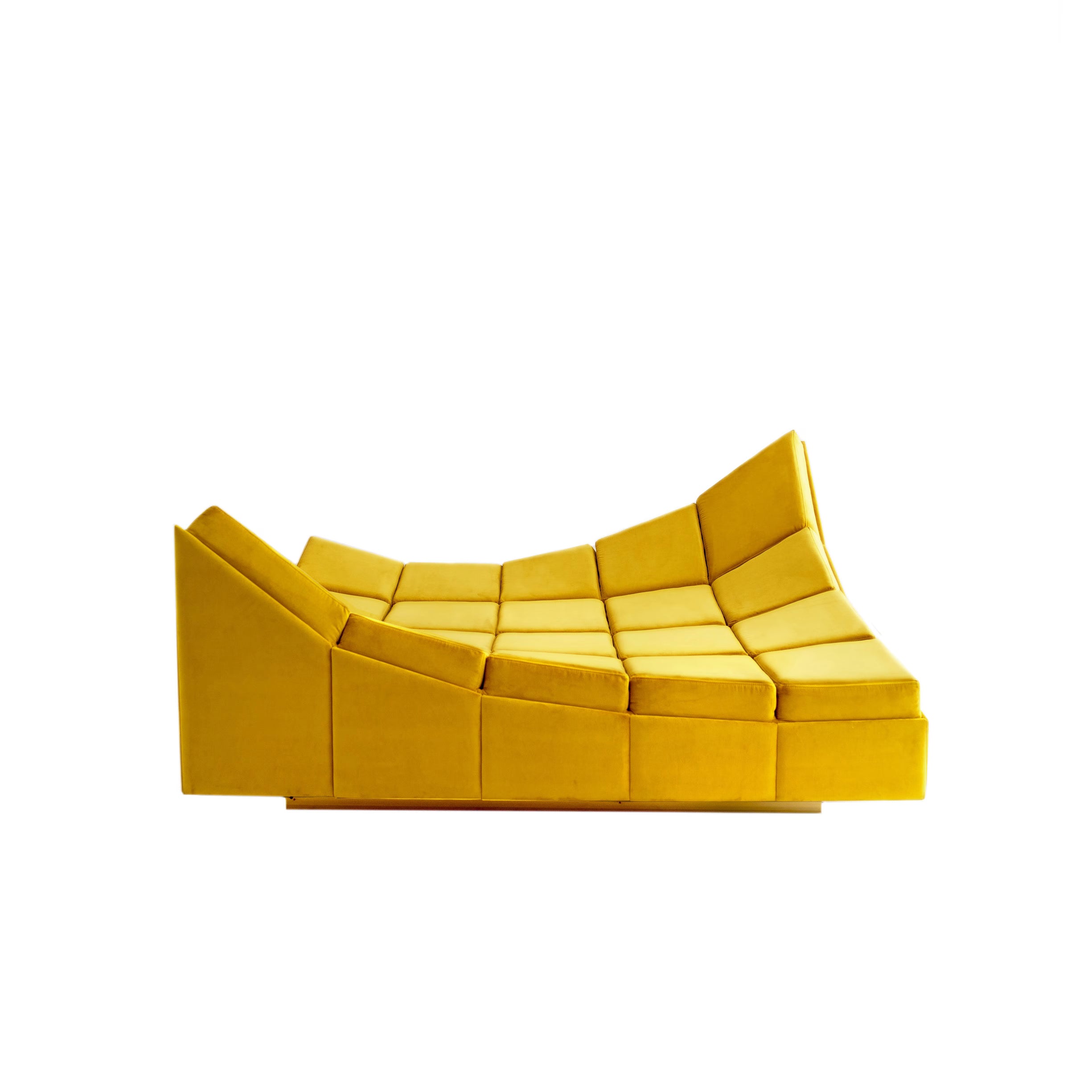 The idea of a sofa with two seats thus leaves room for a single element that expresses a way of restoring basic actions that tend to reunite individuals and art itself. Facing each other, we rediscover the harmony of communicating and sharing a space that becomes a place.