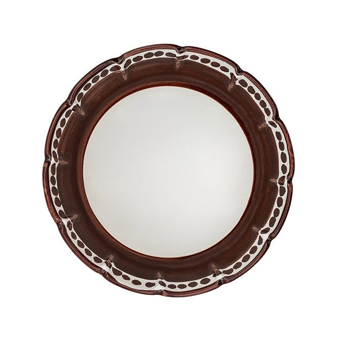 The colored border creates a harmonious contrast with the white, complementing each dish and adding visual rhythm to the table. The warm brown hue evokes natural and welcoming sensations, suitable for informal settings, everyday table settings, or more refined moments, easily integrating into modern, rustic, or minimalist kitchens.