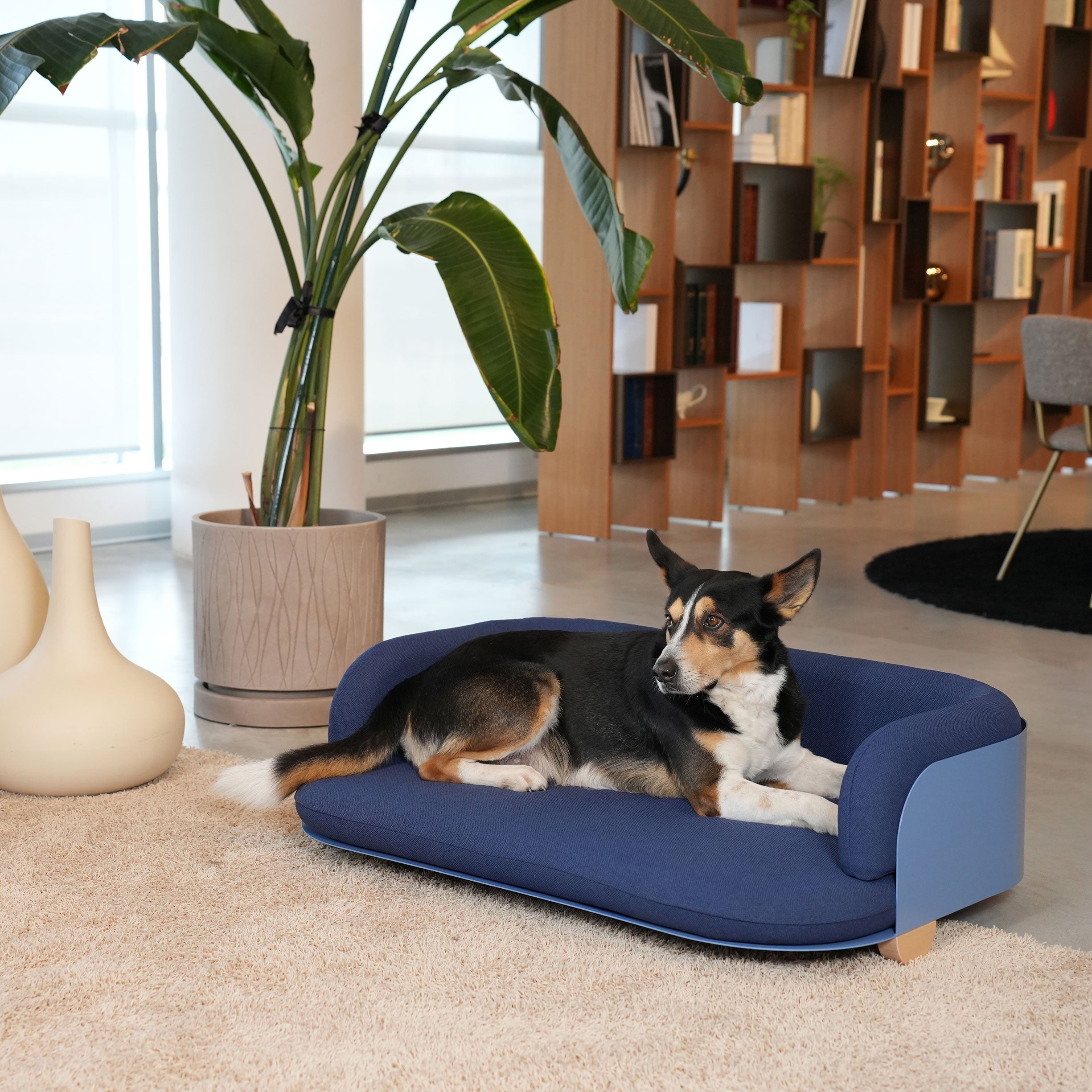 A compact and functional design, a minimalist profile with modern features, it adapts to any setting. The metal frame with natural wood feet ensures maximum stability, while the padded cushion is easily washable and ensures your pet's restful sleep.