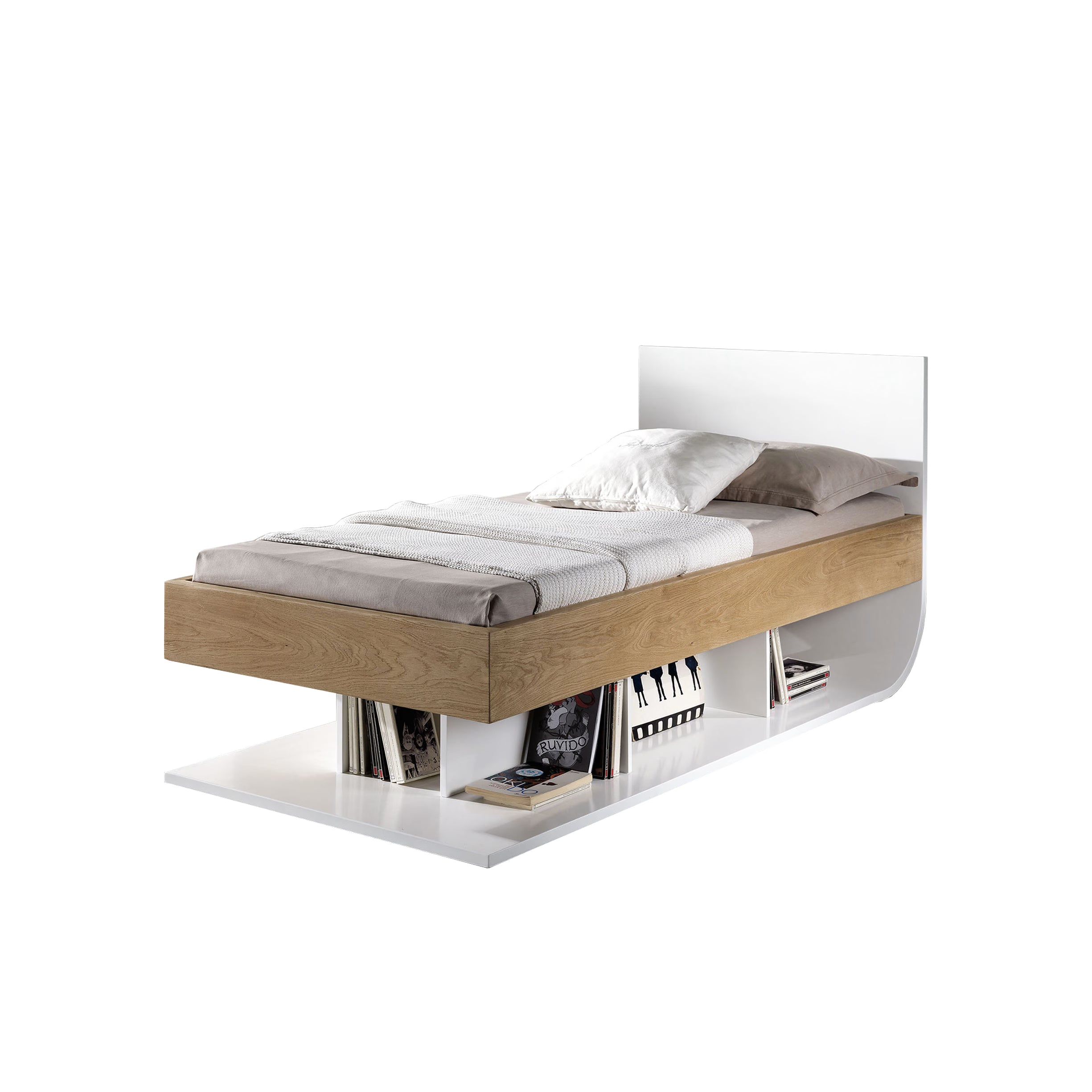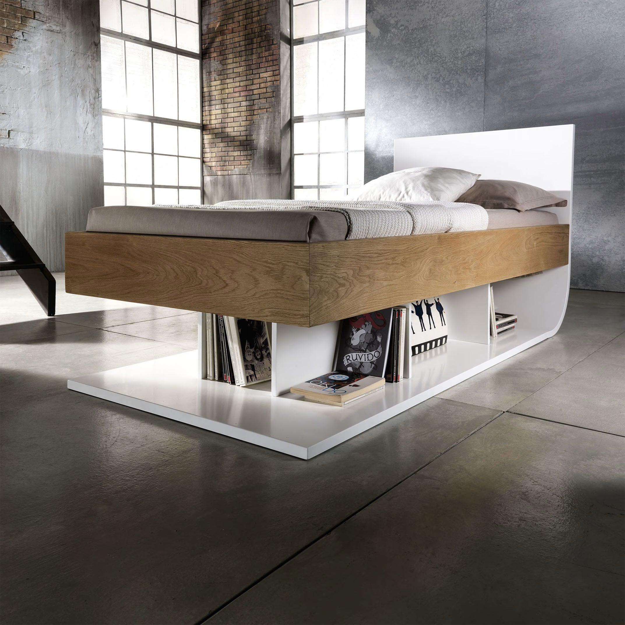 Limbo bed is a bedmade of matt lacquered MDF and oak.