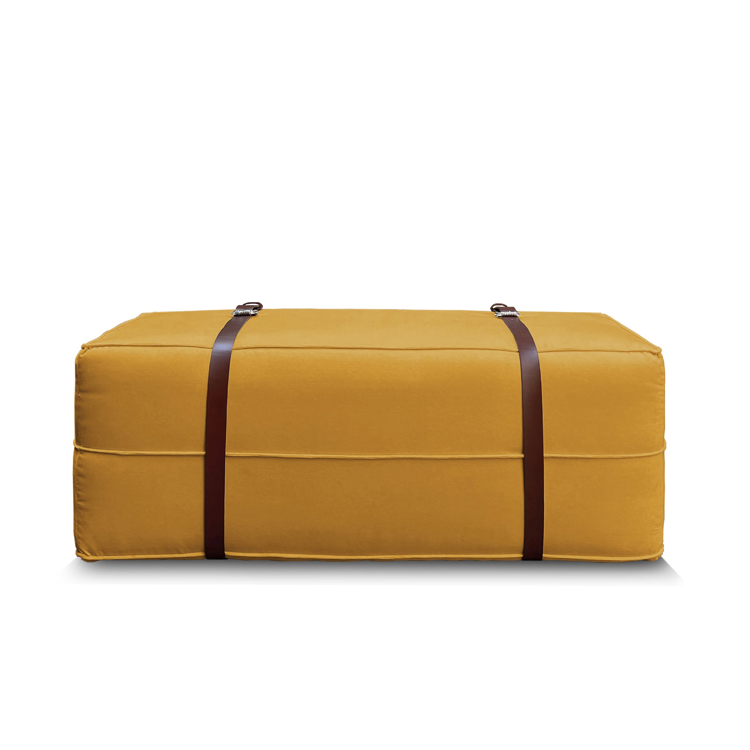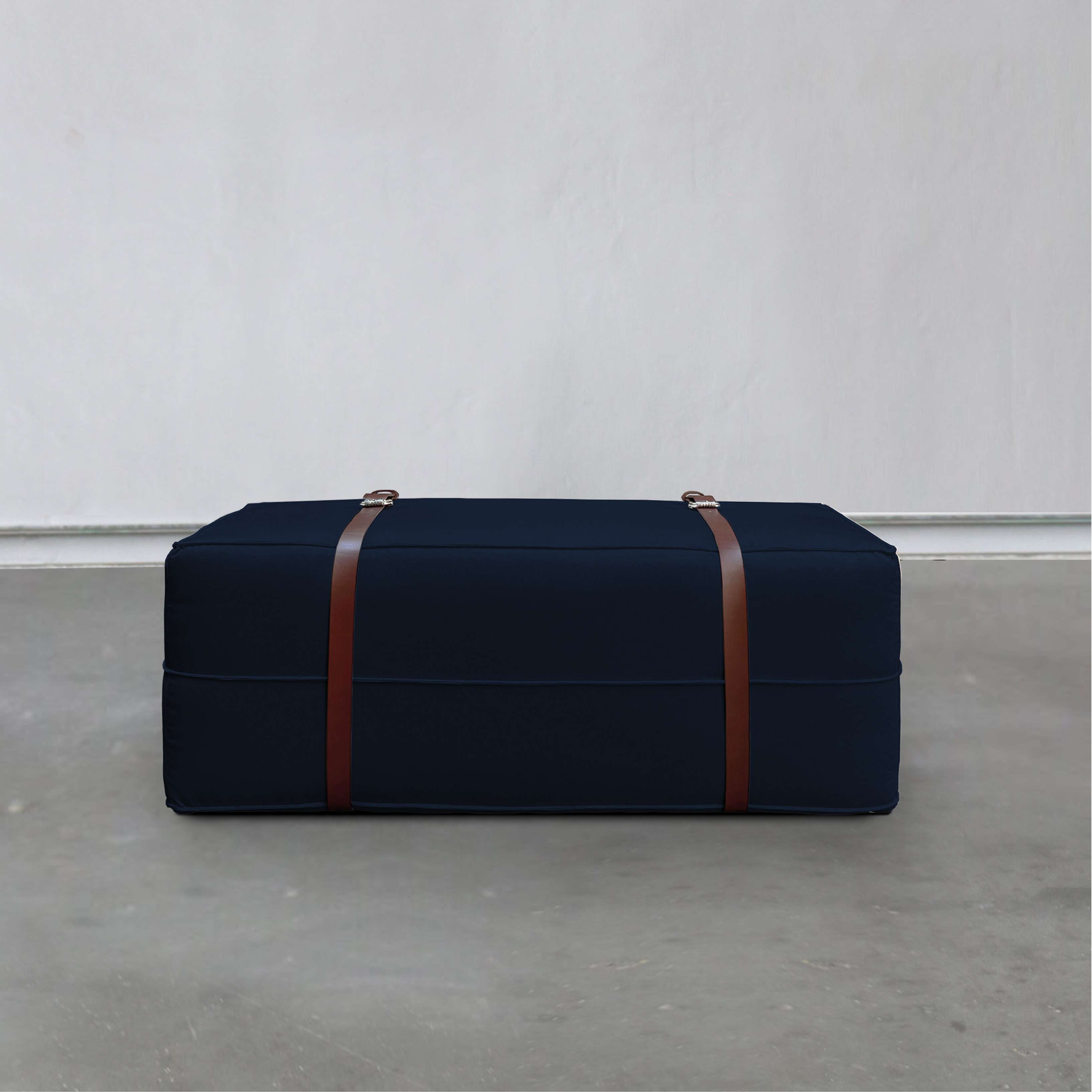 DOCKER is a long poufdefined by the soft velvet fabric and leather details, customizable in different sizes, finishes and colors.