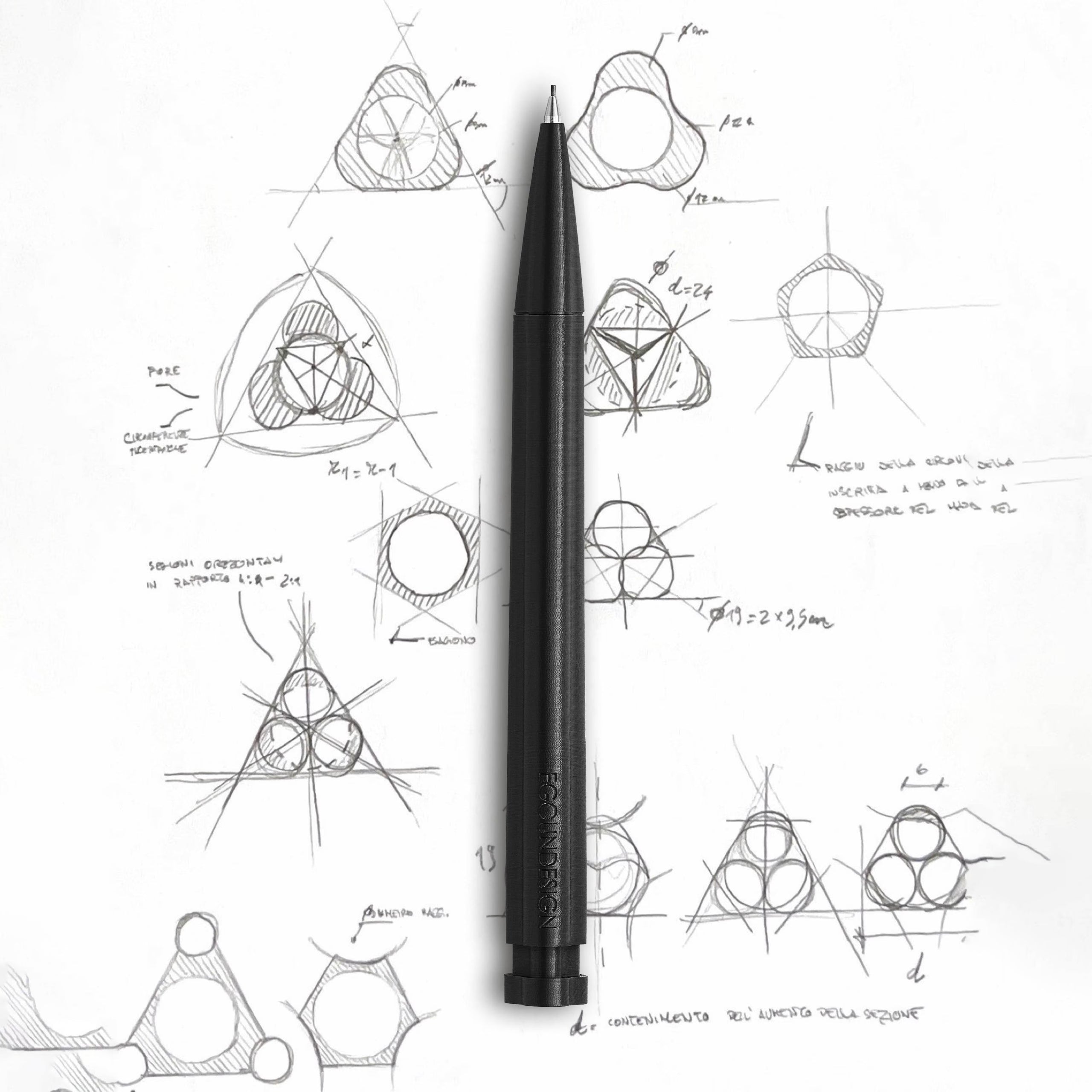 CENTO3 is made with a filament based on PLA (polylactic acid) Obtained from renewable sources such as corn starch, enriched with graphene, a material derived from graphite, composed of a monoatomic layer of carbon. Lightweight, resistant, and high-performance, graphene is considered "the material of the future" due to its extraordinary technological properties. Today, CENTO3 is available in the multifunctional CENTO3.E model, the pocket fountain pen CENTO3.G, the mechanical pencil CENTO3.O, and the rollerball pen CENTO3.R in the carbon color characteristic of graphene.