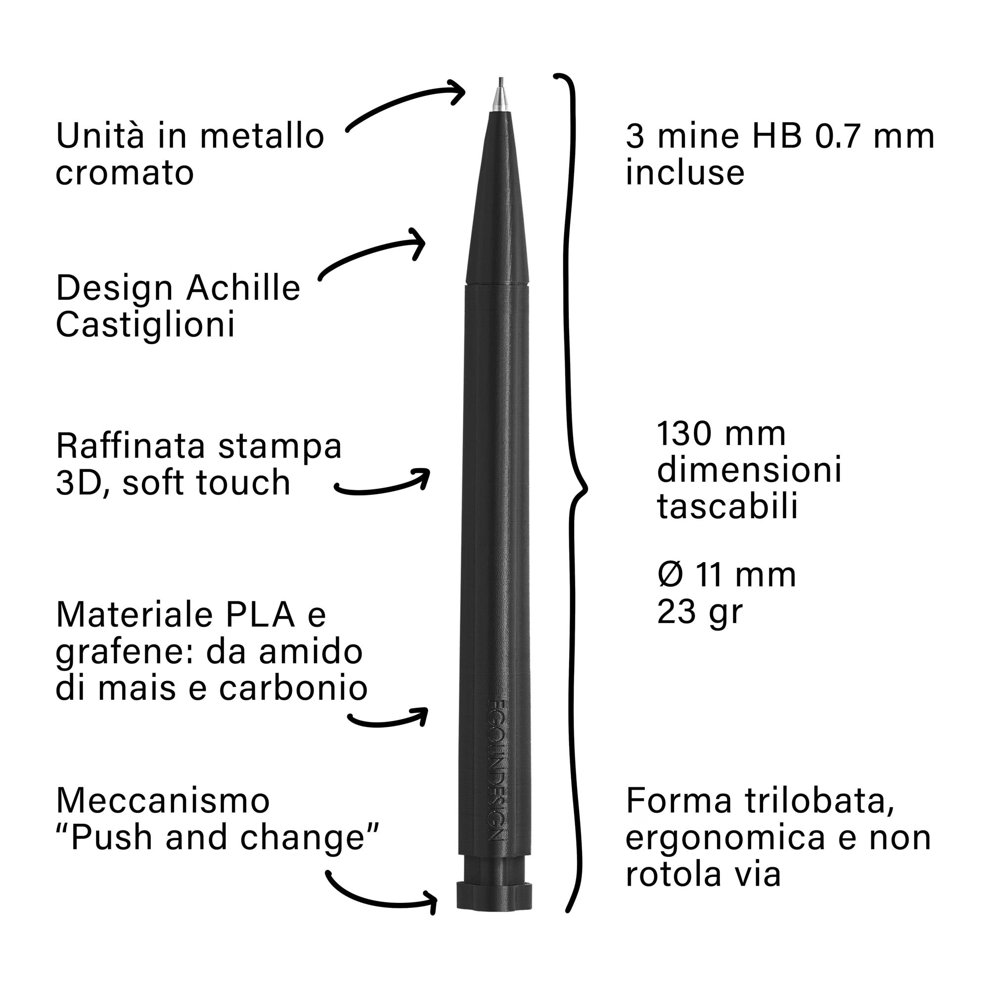 Cento3.O is a mechanical micromine designed by Achille Castiglioni for technical drawing.