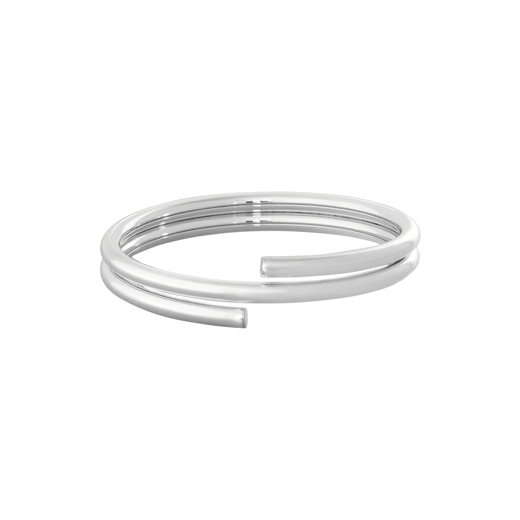 Double-wrap bracelet made of flexible round-section sterling silver that strikes for its extreme simplicity and essential elegance