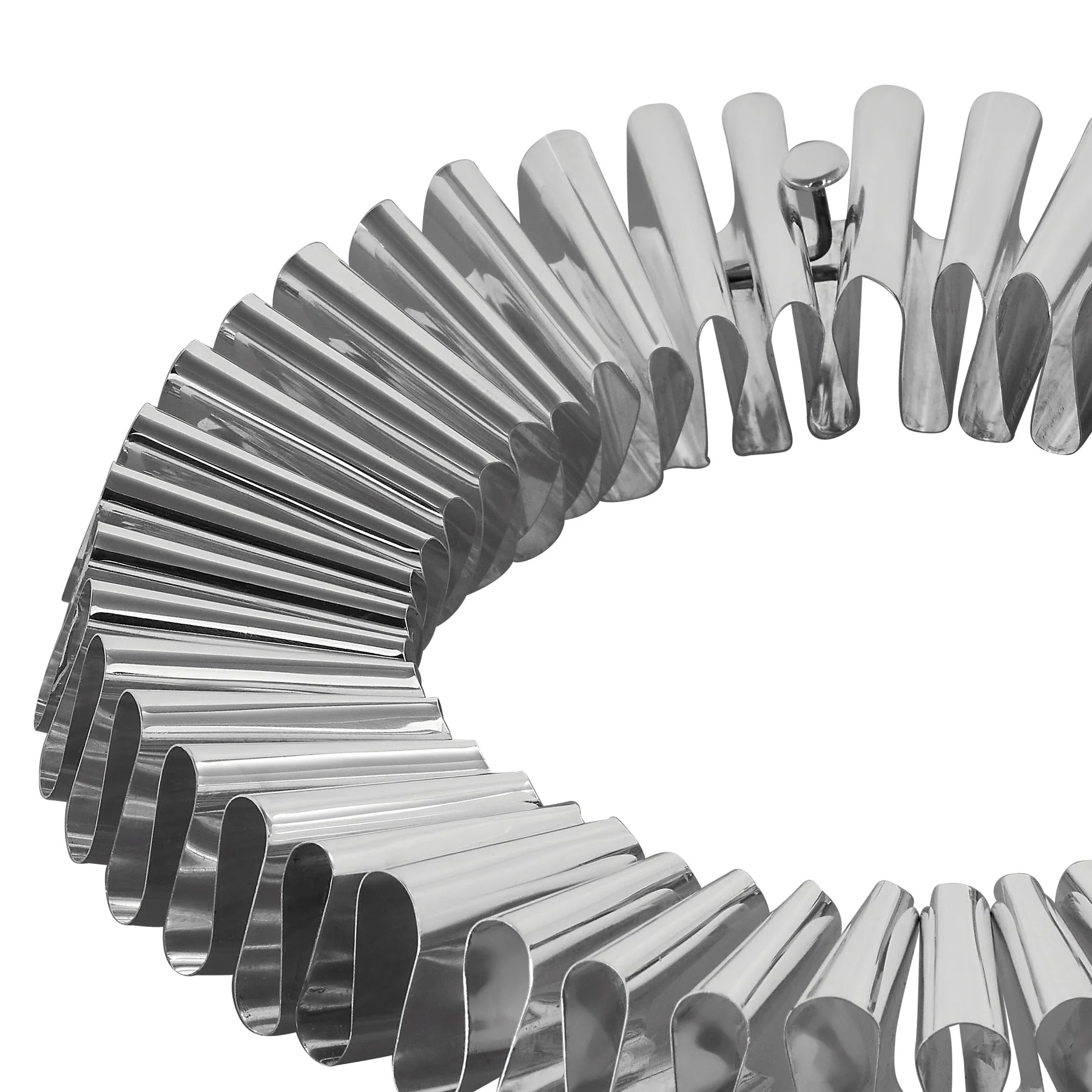 Handcrafted sterling silver ring, a women's piece featuring two parallel lines that elegantly rise from the band. A masterpiece of design by Lella and Massimo Vignelli.