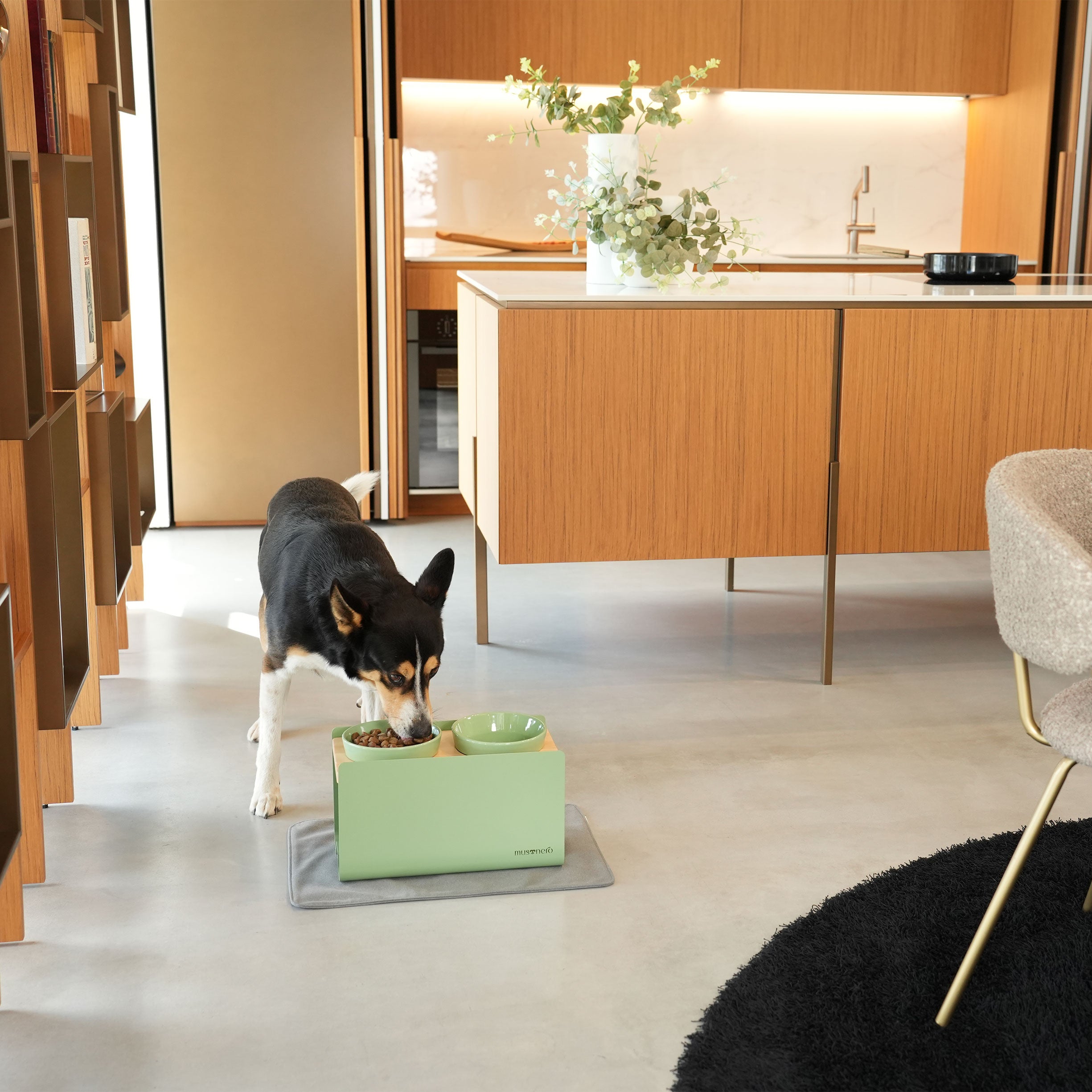 Il kit alzaciotole e ciotole Bill è un incontro tra materie, la prova che dimostra l’assoluta versatilità di questo alzaciotole.