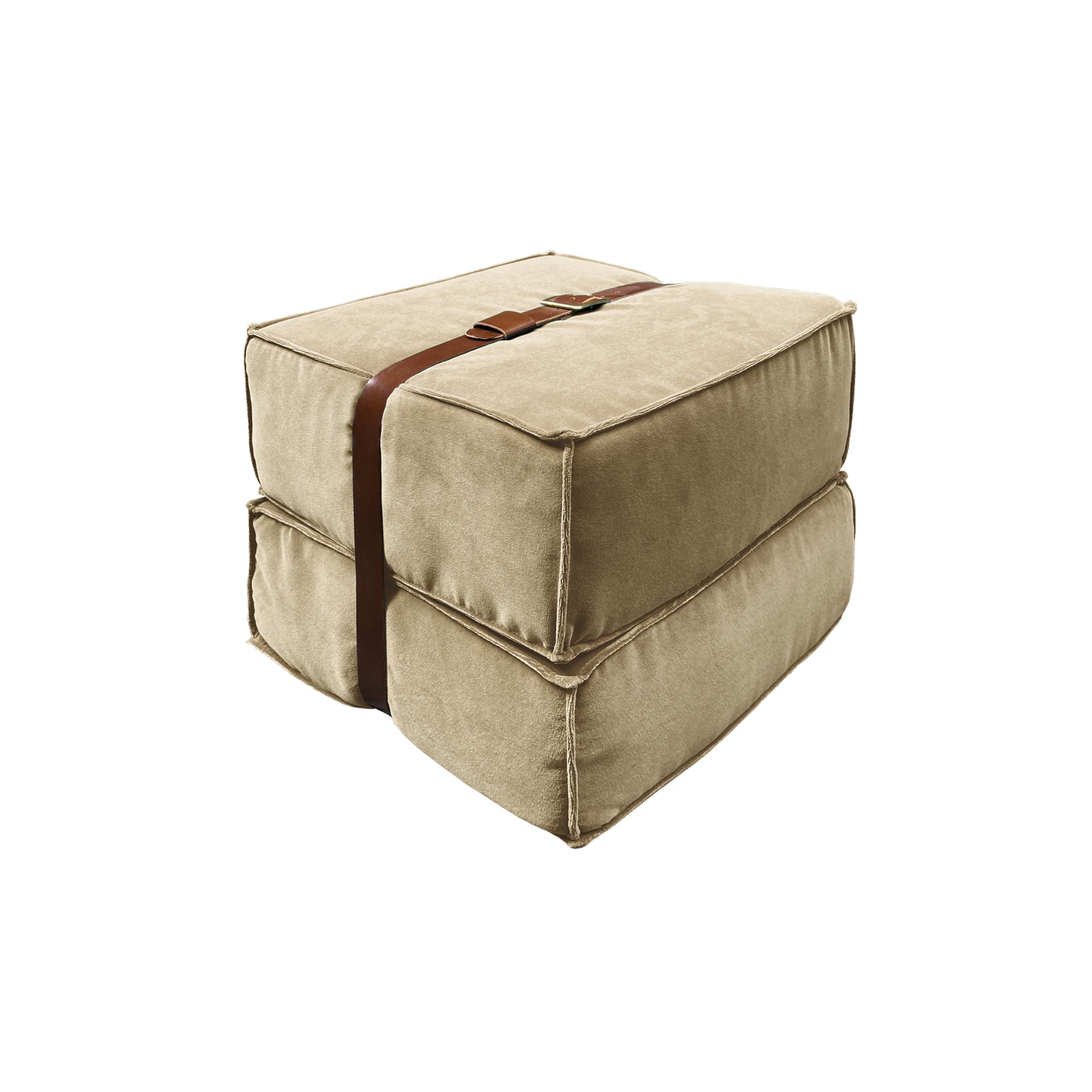 DOCKER è un pouf definito dal tessuto in morbido velluto e dai dettagli in pelle, personalizzabile in diverse dimensioni, finiture e colori.