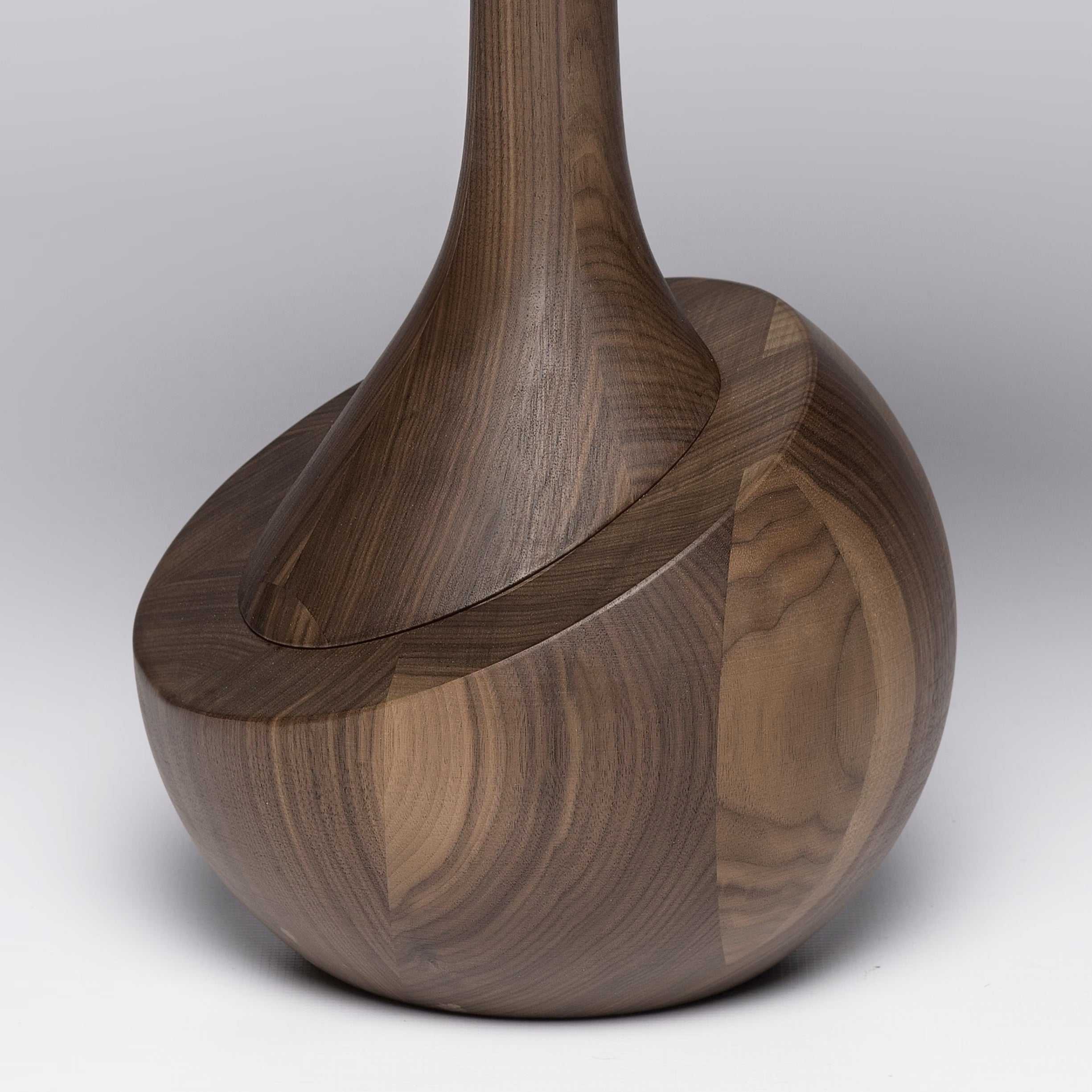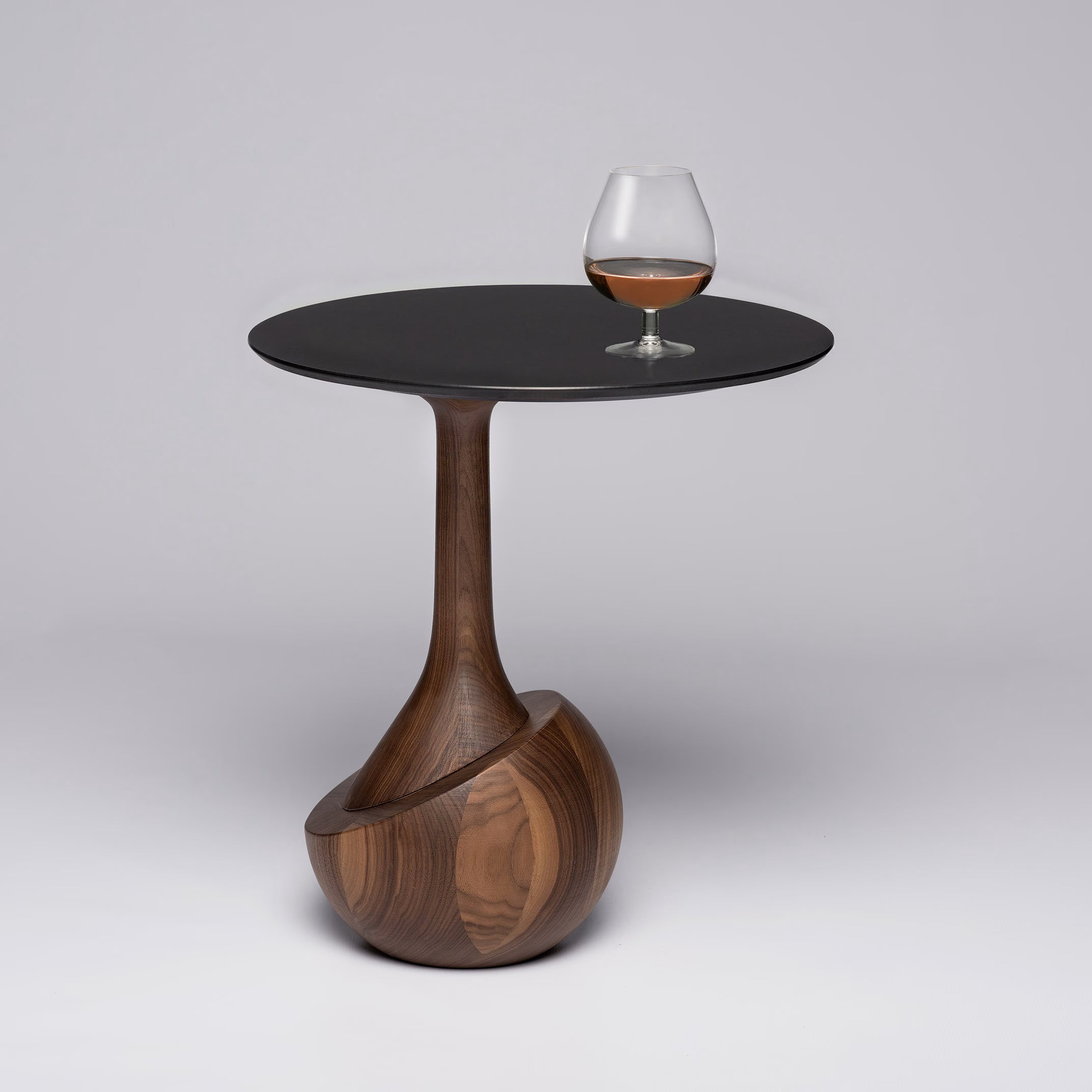 Questo esclusivo tavolino combina materiali tradizionali e innovativi con un design che rende omaggio al grande designer italiano Achille Castiglioni. L’accattivante base è realizzata in noce canaletto e presenta una silhouette scultorea con un’unica gamba affusolata inserita in un globo tagliato in diagonale.Il piano rotondo è in FENIX NTM®, un materiale nanotecnologico con finitura nera opaca che unisce un’estetica elegante a prestazioni tecnologiche. Vera e propria opera d’arte, questo pezzo di artigianato di alta gamma troverà la sua collocazione migliore in un salotto monocromatico e contemporaneo.