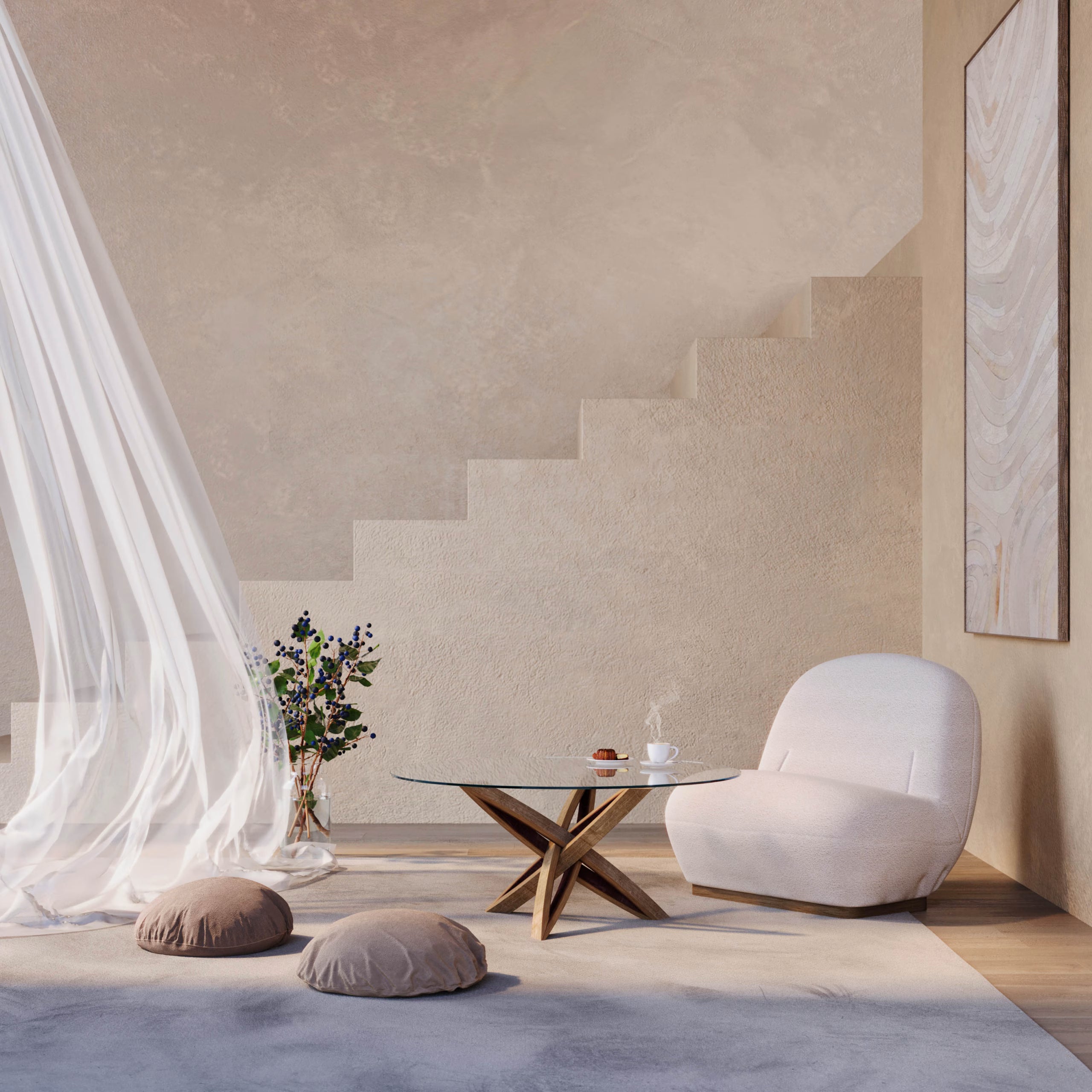 La sua struttura ellittica deriva dal riflesso di due doghe, che sostengono con grazia un piano circolare in vetro, culminando in un intreccio di morbidezza ed eleganza. Ogni ellisse sussurra la storia del distinto viaggio di invecchiamento del vino, mentre le sfumature e le impronte del tempo conferiscono a ogni Narni un fascino naturale e personalizzato.